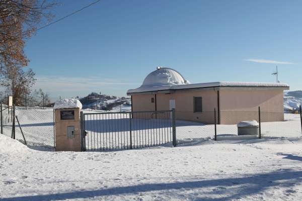 La foto ci mostra l'osservatorio astronomico di Montegrimano nel mese di gennaio, nel suo quieto letargo invernale coperto da una spessa coltre di neve. Con l'inizio della primavera, e le mutate condizioni climatiche, ha ripreso in pieno la sua attività.