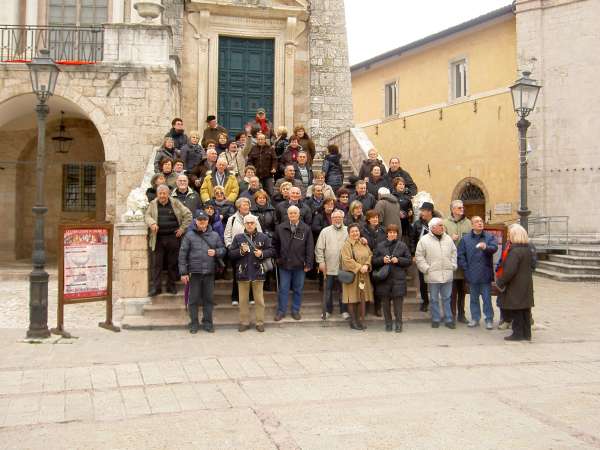 13 marzo 2011, gita domenicale a Cascia e Norcia. Per il numero dei partecipanti, circa 150, è stato necessario utilizzare tre pullman. Un successo con pochi precedenti. Logisticamente si è dovuto ricorrere a due diversi ristoranti. Si ha la presunzione di credere che siano state soddisfatte le aspettative dei soci: trascorrere una piacevole giornata. Se una nota sgradevole vi è stata è che nel pomeriggio la visita di Norcia è stata disturbata un poco dal maltempo.