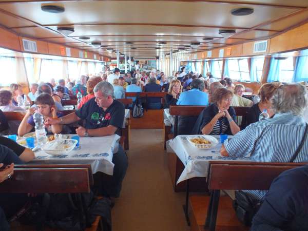 Gita sociale a Comacchio - Navigazione sul Po, 25 settembre 2011. È questa un'escursione riproposta dopo quella effettuata a luglio e programmata puntualmente tutti gli anni. Aspetto che dimostra come sia gradita dai gitanti. La foto in questione è stata scattata all'interno della motonave durante la consumazione del pasto. Autrice dello scatto la signorina Simona Ferrara.