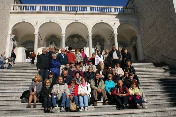 Gita DLF Cassino - Caserta giorni 15 e 16 ottobre 2011. L'escursione è stata favorita da belle giornate di sole che hanno influito ad apprezzare maggiormente i meravigliosi siti visitati. La foto riprende la compagnia durante una sosta all'Abbazia di Montecassino. Lo scatto si deve al socio Giorgio Brumali.