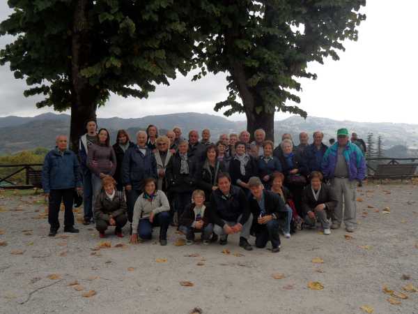 Gita sociale ad Acquapartita a Castagnare il 20 ottobre 2013. Raccolta generalmente scarsa. Questa foto è stata scattata dopo il pranzo al ristorante e riprende parte della comitiva. Autore dello scatto il socio Lucio Brughiera.
