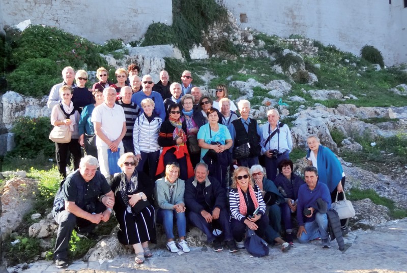 Dal 12 al 15 Ottobre si è svolta una gita in Puglia alla scoperta delle località più rinomate della valle d'Itria. I soci hanno potuto inoltre visitare le Grotte di Castellana e ammirare la splendida cattedrale romanica di Trani. Nella foto i gitanti sono stati ripresi in un angolo caratteristico di Ostuni, la città bianca, colti in un momento di relax. Foto dalla socia Rosanna Battistoni.