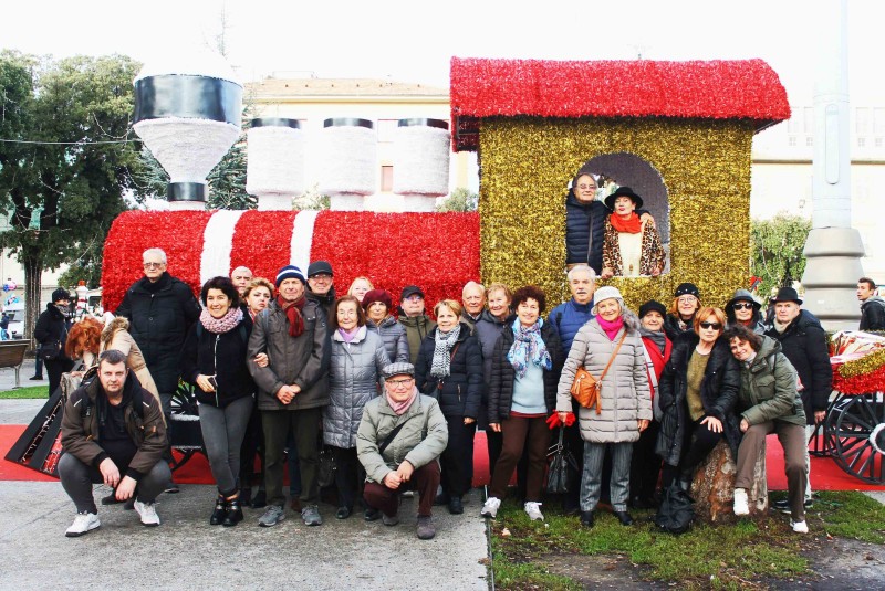 9 Dicembre gita a San Miniato ed Empoli. Partenza con il sole e arrivo a San Miniato sotto una leggera pioggia che ha propiziato una visita al museo Diocesano e successiva visita della bella cittadina, graziati dal miglioramento della situazione meteorologica. Trasferimento poi ad Empoli dove ci aspettava il ristorante Riso e brace che, come da insegna, ci ha servito primi di riso e carne alla brace per secondi. Al termine visita della città già con abbigliamento natalizio e dove, sullo sfondo di una locomotiva in sintonia con il DLF, è stata scattata la foto di gruppo. Foto del socio Giorgio Deangeli.