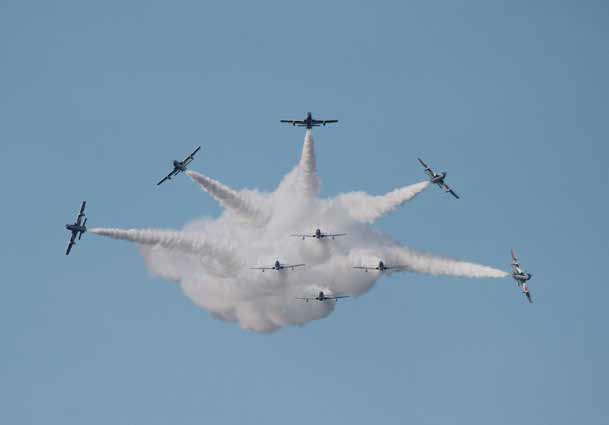 Dal socio Giorgio Deangeli è pervenuta questa interessante foto, da lui scattata sabato 18 giugno durante una manifestazione aerea, che riprende la formazione acrobatica delle Frecce Tricolori durante la loro spettacolare, ardita, esibizione sul cielo della marina di Rimini.