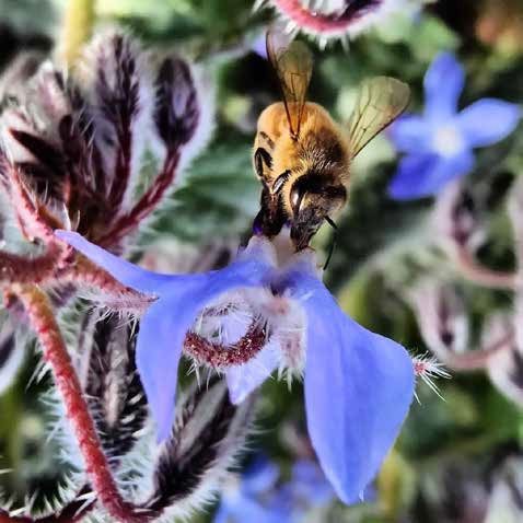 La foto qui pubblicata ci è giunta dalla signora Vilma Lotti; riprende un'ape che, alla ricerca di polline, si approssima a un fiore di borragine, pianta significativa del periodo.