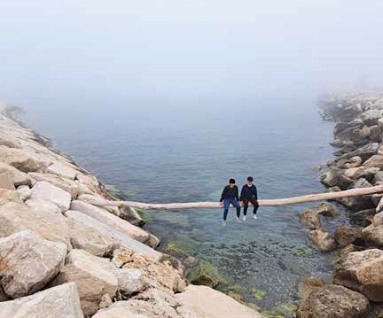Un giorno di buon mattino passeggiavo lungo il molo della darsena del porto canale a Rimini quando, già a distanza, mi appare un'immagine strana, due ragazzini che dondolavano spensierati su un tronco di un albero di grosse dimensioni, steso fra due sponde di scogliera frangiflutti, che in quel punto forma una stretta insenatura. Forse si trovavano lì per godersi l'aria purissima del mare in quella splendida, quieta, giornata.