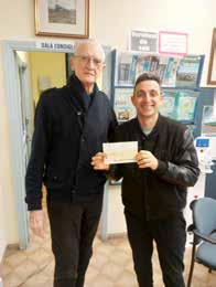 Nella foto il Presidente DLF consegna l'assegno di assistenza al socio Emanuele Parmeggiani.