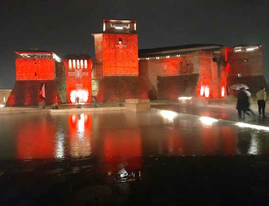 Il rinascimentale, brunelleschiano, Castel Sismondo di Rimini conserva inalterato il suo austero fascino, non scalfito dallo scorrere del tempo. Assume altresì nella tetra fase notturna, sotto l'effetto di sapienti faretti, posti sulle sue mura, che emanano una luce rossastra, una visione spettacolare, esaltata ancor più dal suo riflettersi nel fronteggiante specchio d'acqua.