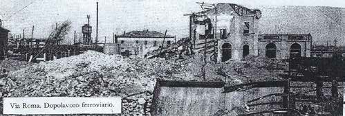 Nella foto qui pubblicata, scattata nell'immediato dopoguerra in via Roma, si possono notare i ruderi e l'ammasso di macerie che circonda la sede del Dopolavoro Ferroviario mentre, in posizione più arretrata, si scorge una palazzina rimasta quasi intatta, già sede di uffici ferroviari e della mensa ferroviaria.