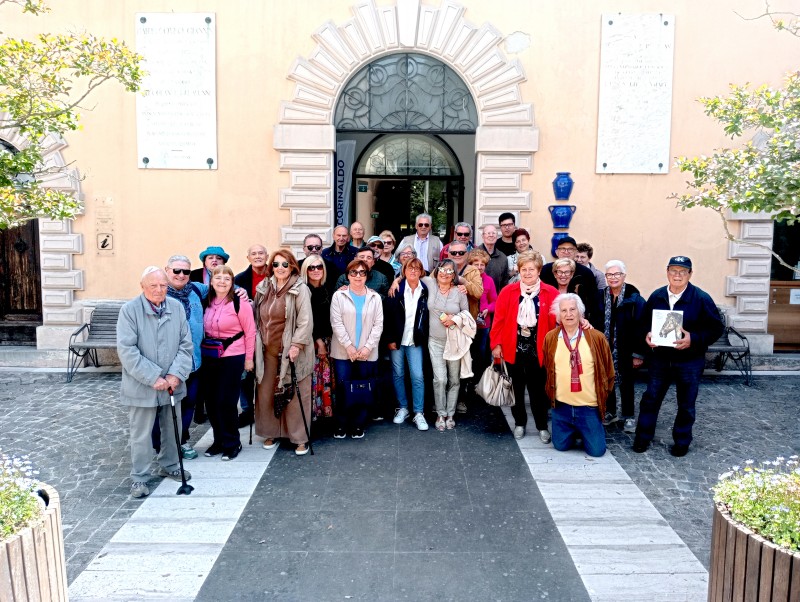Domenica 11 maggio, i gitanti nel mattino raggiungevano la cittadina di Pergola, (foto di gruppo scattata all'esterno del museo civico). La cittadina si fregia di preservare un unicum, il famoso reperto artistico del gruppo romano dei bronzi dorati. L'escursione poi procedeva per raggiungere al mare Marotta, dove li attendeva il ristorante per il consumo un pantagruelico menù di pesce. Nel tardo pomeriggio facevano, poi, rientro a Rimini.