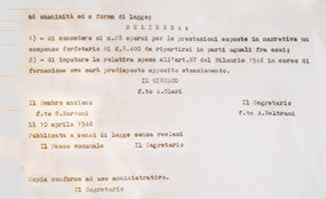 Si è a ringraziare il socio Daniele Brunetti che ha scovato e fatto pervenire questo inedito documento, si presume proveniente dall'archivio comunale, riguardo a una delibera dell'anno 1946 della Giunta Comunale, dalla quale si evince come una squadra di maestranze dell'Officina Locomotive FS, nel tempo libero dal servizio, si sia offerta, con spirito solidale, al lavoro volontario per il bene comune.