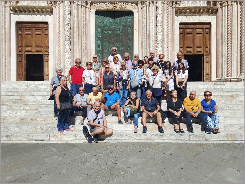 7 settembre, l'istantanea qui esposta riprende la facciata del Duomo di Siena. Sul suo sagrato i gitanti DLF posano per la foto di rito. Questa foto è stata scattata il primo giorno dell'escursione che ha avuto come altre mete Pienza e Montepulciano. Foto di Baldacci Giuseppina.