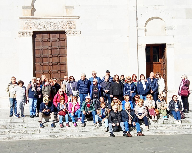 3 ottobre 2025, foto di gruppo DLF scattata a Lucca, rinomata città d'arte dalle intatte mura rinascimentali e che conserva celebri Chiese, Monumenti, Pinacoteche, Musei, attrattive che alimentano un costante flusso turistico. Il viaggio è poi continuato con il traghettamento per l'Isola d'Elba. I gitanti così hanno, poi, potuto apprezzare le bellezze naturali e artistiche che l'isola offre, dove hanno trascorso due giorni in tutto relax. Foto a Lucca di Giuseppina Baldacci.