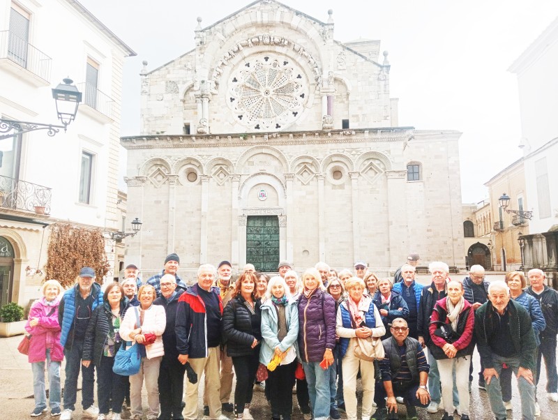 21 - 24 ottobre, un nutrito gruppo di soci ha aderito all'iniziativa del DLF per un viaggio in Puglia, nella circostanza sono state raggiunte le località di: Lucera, Troia, Monopoli, Bari, Locorotondo, Alberobello, Lecce, Gallipoli, Galatina, Martina Franca e Ostuni. La gita ha risposto pienamente alle più rosee attese. La foto di gruppo qui pubblicata è stata scattata sul sagrato della Cattedrale di Troia.