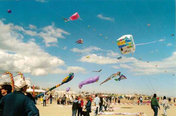Nei due giorni di aprile, con un successo annunciato, si è svolta, nel tratto di spiaggia antistante il piazzale Fellini, la manifestazione di volo degli aquiloni, una moltitudine che si stagliava in cielo nelle forme più bizzarre, dalle diverse dimensioni e dai vivaci colori, una vera gioia per i tanti bambini che, con i loro familiari, sono accorsi ad ammirarli.