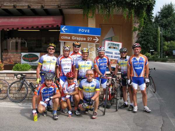 Si è partiti così all'alba e, dopo alcune ore di viaggio, si è giunti a Cittadella, qui siamo stati accolti dal gruppo locale. Dopo i saluti di cortesia si è presa la bicicletta ed è iniziata l'avventura: prima tappa Bassano; qui una rapida fermata sul famoso ponte, poi direzione Romano d'Ezzelino con la scalata al monte Grappa.
