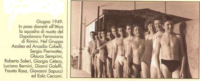 Questa foto riprende elementi della squadra nuoto DLF sul porto canale, in un'epoca dove a Rimini non esistevano ancora piscine coperte. La stessa è stata pubblicata sulla rivista culturale cittadina ARIMINUM nel suo numero di Gennaio/Febbraio del c.a., a illustrazione di un articolo del giornalista Enzo Purroni.