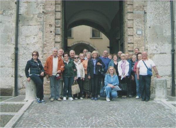 Gita Atri - Teramo, 15 Maggio 2011. Foto scattata nell'artistica cittadina abruzzese di Atri davanti all'ingresso del nobile Palazzo degli Acquaviva, oggi sede Comunale. La foto riprende una parte della comitiva in posa davanti all'obiettivo. La gita è proseguita nel pomeriggio con la visita del Capoluogo Teramo. Autore dello scatto è stato il socio Ivo Catozzi.