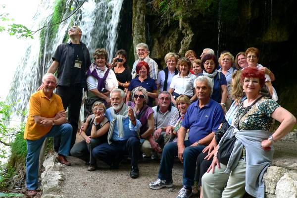 Gita del 20 - 22 Maggio 2011 a Opatija - Rijeka Krk - Laghi di Plitvice. Una nutrita compagnia di gitanti ha partecipata a questo bel viaggio che ha goduto di favorevoli condizioni climatiche. Un interessante itinerario che ha avuto nella giornata dedicata alla visita del Parco Nazionale dei Laghi di Plitvice la sua fase più suggestiva e di massimo interesse. La foto che riprende parte dei gitanti è stata scattata ai laghi superiori nei pressi della grande cascata. La foto ci è pervenuta dalla socia Daniela Catalini.