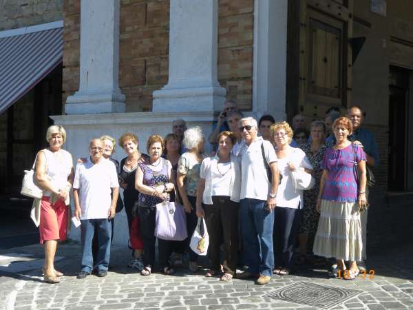Gita sociale a Cingoli - Mondavio dell'11 settembre 2011. Favoriti da una bella giornata di sole si è fatto visita a queste interessanti cittadine, nella pausa fra le due escursioni si è trovato ristoro in un noto ristorante di pesce a Porto San Giorgio. Questa foto riprende una parte della comitiva sotto Porta Piana a Cingoli. Autore dello scatto è stato il socio Umberto Tombesi.