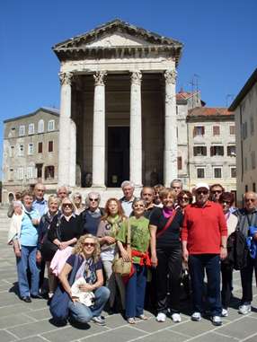 Gita DLF in Istria 27 - 29 aprile 2012. A Pola la comitiva è stata ripresa in posa davanti al Tempio romano dedicato ad Augusto. La foto ci è pervenuta dai coniugi Palma Giannoni e Eugenio Zannoni.