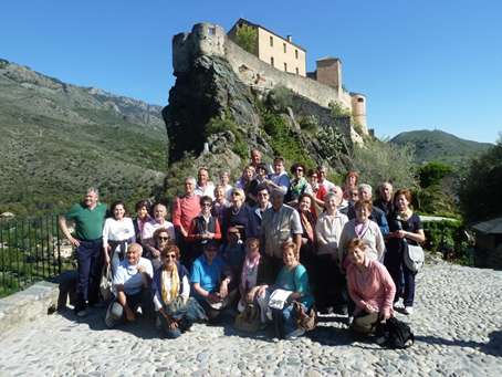 Gita DLF in Corsica 10 - 13 maggio 2012. Questa foto di gruppo è stata scattata il giorno 11 maggio 2012 a Corte, capitale durante la fase dell'indipendenza dell'isola. La foto è pervenuta dal socio Giovanni Bianchi.