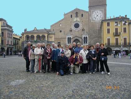 Gita DLF a Lodi e Grazzano Visconti di domenica 20 maggio 2012. La foto della comitiva è stata scattata a Lodi in piazza della Vittoria. Autore dello scatto il socio Umberto Tombesi.
