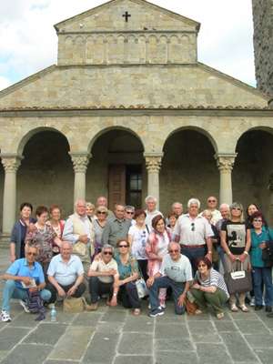Gita DLF in Valdarno e nel Chianti del 2 - 3 giugno 2012. La foto riprende il gruppo dei gitanti sul sagrato della Pieve di San Pietro a Cascia Reggello (FI). La foto ci è pervenuta dal socio Mario Zammarchi.