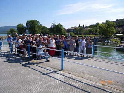 Gita DLF al lago Trasimeno e Chiusi, di domenica 24 giugno 2012. La foto è stata scattata al lago Trasimeno e riprende parte dei partecipanti sul molo di attracco dei traghetti per l'isola Maggiore. Autore dello scatto il socio Umberto Tombesi.