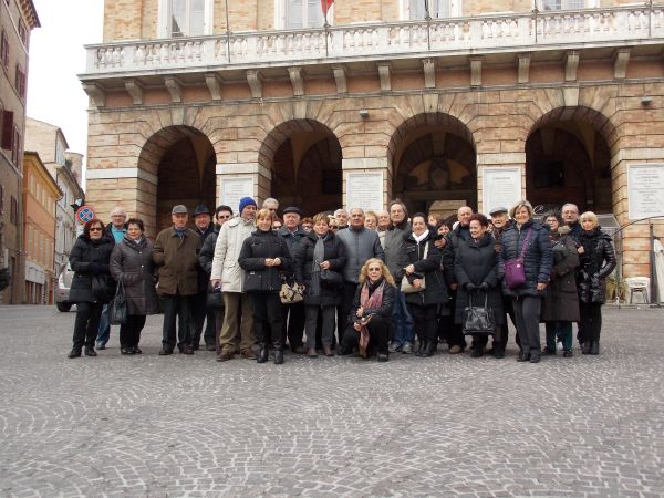 Gita sociale a Macerata - Potenza Picena del 17 febbraio 2013. La foto di gruppo è stata scattata nel mattino a Macerata, in piazza Della Libertà con alle spalle il Palazzo del Comune, dal socio Umberto Tombesi.