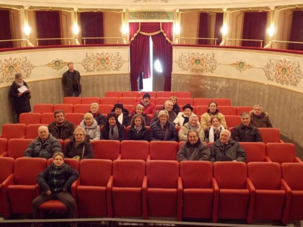 Gita sociale Arcevia - Grotte di Frasassi del 3 marzo 2013. La foto riprende una parte dei componenti la comitiva all'interno del teatro Misa ad Arcevia. La foto si deve ad uno scatto del socio Umberto Tombesi.