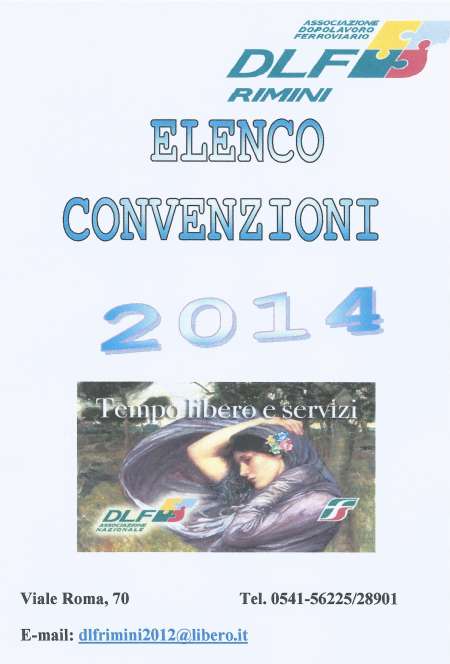 Si avvisano i soci interessati che presso la Segreteria del DLF Rimini è disponibile l'opuscolo delle convenzioni in vigore per l'anno in corso, dove, se richiesto, si potranno fornire le eventuali delucidazioni; tel. 0541.56225. L'elenco può essere visionato anche sul sito DLF.
