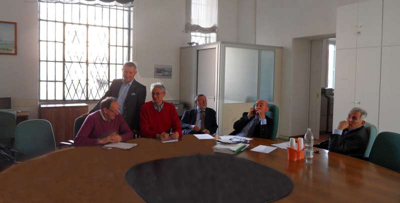La foto scattata dal segretario DLF Rimini Lucio Brughiera riprende al tavolo delle trattative da sinistra a destra: l'amministratore DLF Rimini Mario Zammarchi, in piedi il presidente della società Patrimonio DLF Vito Tedesco, il presidente DLF Rimini Giovanni Vannini, il funzionario DLF Angelo Battisti, il presidente DLF Nazionale Oliviero Brugiati e il vicepresidente Armando Massimini.