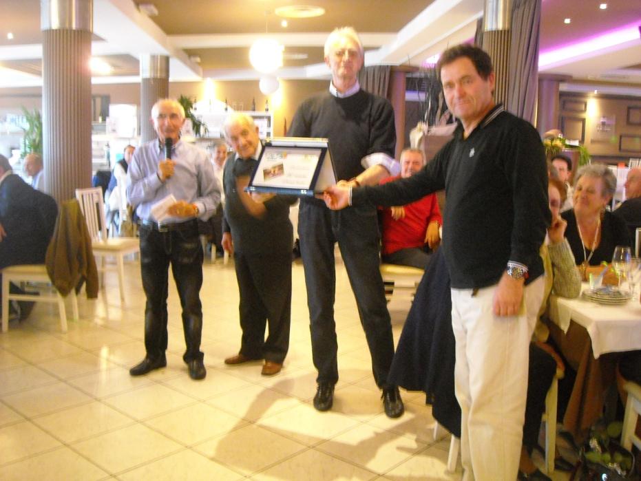 Questo scatto ne fissa per l'appunto il momento. Nella foto sono riconoscibili da sinistra: il socio Giorgio Brumali animatore dell'evento, il vicepresidente Daniele Drudi, il presidente Giovanni Vannini e il segretario Lucio Brughiera. La foto è pervenuta dalla sig.na Annamaria Marconi.