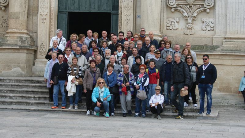 Gita in Salento e Matera dal 24 al 27 Ottobre 2015. Questa foto di gruppo è stata scattata il terzo giorno a Lecce sulla scalinata di accesso alla Cattedrale, ed è pervenuta dal signor Luigi Muratori.