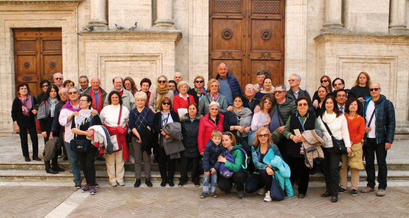 Domenica 3 Aprile la comitiva DLF ha nell'occasione avuto come mete di destinazione due cittadine toscane: Montalcino (nota per il suo celebre vino: il Brunello) che conta anche un notevole centro medioevale dominato dalla Rocca, visitata nel mattino, e nel pomeriggio Pienza, la città ideale voluta dal Papa Pio II. La foto qui pubblicata è stata scattata sul sagrato del Duomo di quest'ultima città ed è pervenuta dal sig. Giorgio Deangeli.