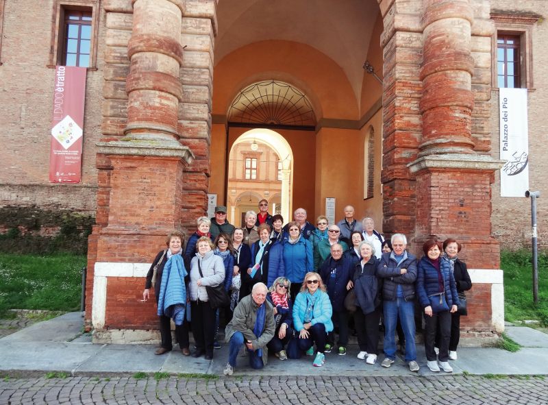 Il giorno 10 Aprile escursione DLF a Carpi, questa foto è stata scattata davanti al Palazzo del Pio. Nel pomeriggio la visita, dopo la pausa pasto in ristorante, è proseguita con la visita di una acetaia e di un caseificio. La foto è pervenuta dalla socia Rosanna Battistoni.