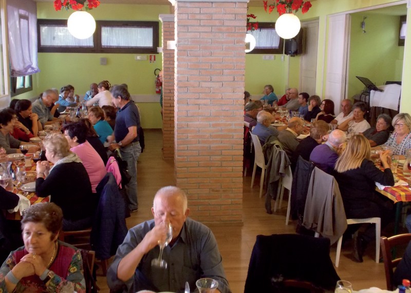 Domenica 15 Ottobre la gita DLF ha raggiunto un castagneto nella zona di Acquapartita dove era stato allestito attorno a un focone un buffet con distribuzione di salumi, formaggi, caldarroste, bruschette e del buon vino Sangiovese. Dopo la raccolta castagne ci si è trasferiti al mercato di Bagno di Romagna per una breve sosta, quindi proseguimento per le Balze dove i partecipanti hanno banchettato. La foto qui scattata riprende i commensali durante quest'ultima fatica; la foto si deve al signor Umberto Tombesi.