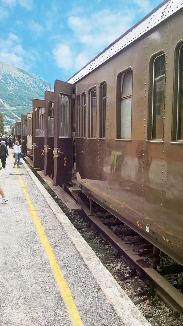Foto scattata domenica 24 giugno sulla tratta ferroviaria Sulmona - Castel di Sangro durante la sosta del treno storico in una stazione intermedia. Il convoglio era composto da vetture risalenti agli anni 40/50. I soci DLF hanno partecipato numerosi a questa gita evocativa di un passato dove i mezzi di trasporto erano diversi e meno confortevoli degli attuali. Iniziative come questa sono accolte favorevolmente nonostante, come in questo caso, i passeggeri si siano dovuti sistemare in scomodi e duri sedili di legno.