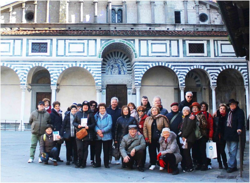 18 Novembre Gita a Pistoia e Signa. Giornata piovigginosa che si è gradualmente trasformata all'arrivo in una giornata ventosa ma solatia che ha permesso un'esauriente visita della città, in particolare delle sue bellissime chiese. Sosta per il pranzo che presentava un piatto antico e tradizionale del territorio, la zuppa del carcerato, che ha diviso i palati dei gitanti. Ripartenza nel pomeriggio per Signa con visita di due chiese, ricche di opere d'arte, e tranquillo ritorno a casa. Foto e didascalia del socio Giorgio Deangeli.