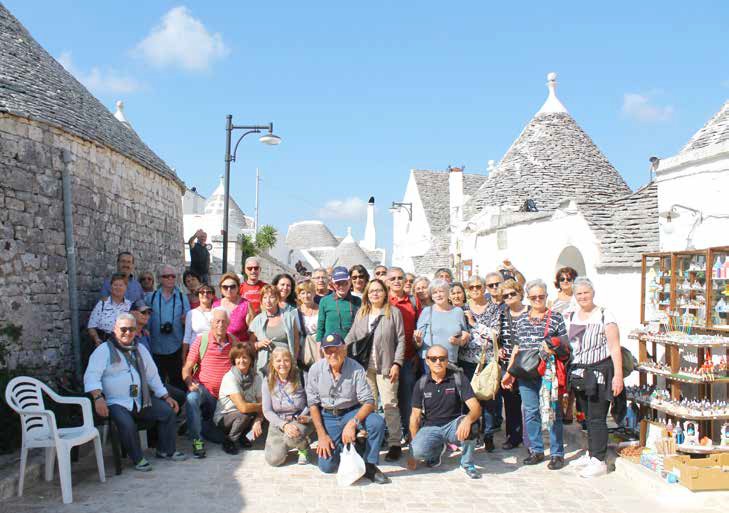 13 - 16 ottobre - Gita in Puglia che si presenta sotto gli auspici di bel tempo e inizia con la visita di Lucera. Ripartenza per Andria con sistemazione in hotel e ripartenza il giorno dopo per Matera e Altamura. Terzo giorno dedicato alla visita di Alberobello e alle Grotte di Castellana per finire l'ultimo giorno con l'escursione a Castel del Monte. (Se non fosse stato per l'incidente capitato al nostro presidente sarebbe stata perfetta).