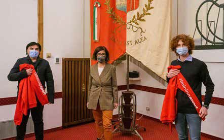 Nella foto l'accoglienza tributata ai due soci nella sala dell'Arengo, a destra dell'assessore Roberta Frisoni (figlia di ferroviere) Mario Voltolini e a sinistra William Pecci.