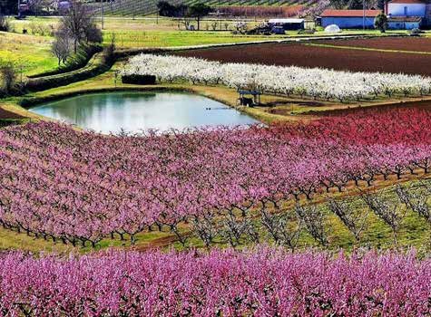 La socia Vilma Lotti, nelle campagne collinari del comune di Longiano, ha fotografato, ai margini di uno specchio d'acqua, la fioritura di diverse colture di frutteti nella loro rigogliosa veste primaverile: una splendida esplosione di colori.