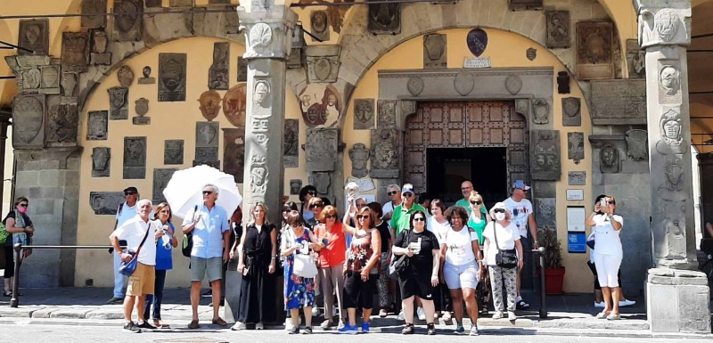 Domenica 17 Luglio gita in provincia di Arezzo. In mattinata si è raggiunto San Giovanni Valdarno, una cittadina fondata nel Medioevo dai Fiorentini a protezione dei propri confini. Si è visitato, fra l'altro, il Museo Diocesano dove troneggia l'opera pittorica più insigne: l'Annunciazione del Beato Angelico. Dopo la pausa in ristorante, nel pomeriggio vi è stata la visita di Anghiari, con i gitanti angustiati dal caldo. Foto della socia Giuseppina Baldacci.