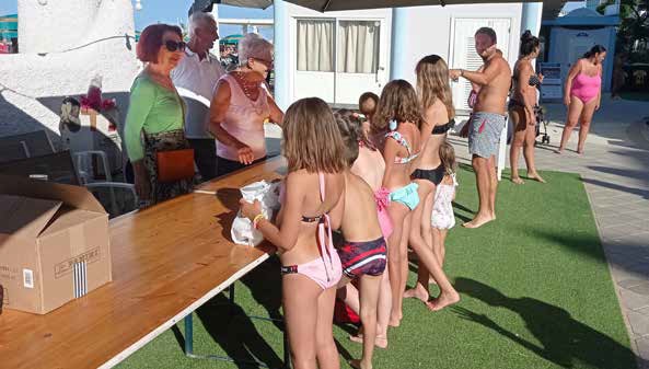 La foto riprende, durante una manifestazione, lo stand laboratorio che il Gruppo Aquilonisti ha allestito per il confezionamento di aquiloni.