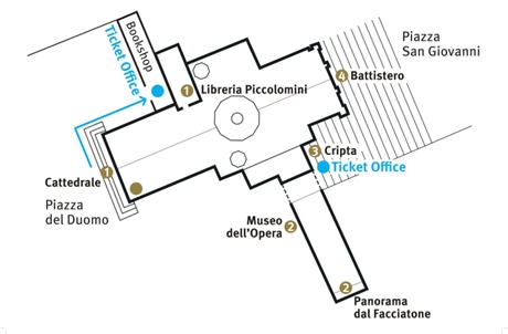 Biglietto d'ingresso per: il Duomo, la libreria Piccolonomi, la Porta del Cielo, il Battistero, la Cripta, il Museo dell'Opera metropolitana, il Facciatone, l'oratorio di San Bernardino